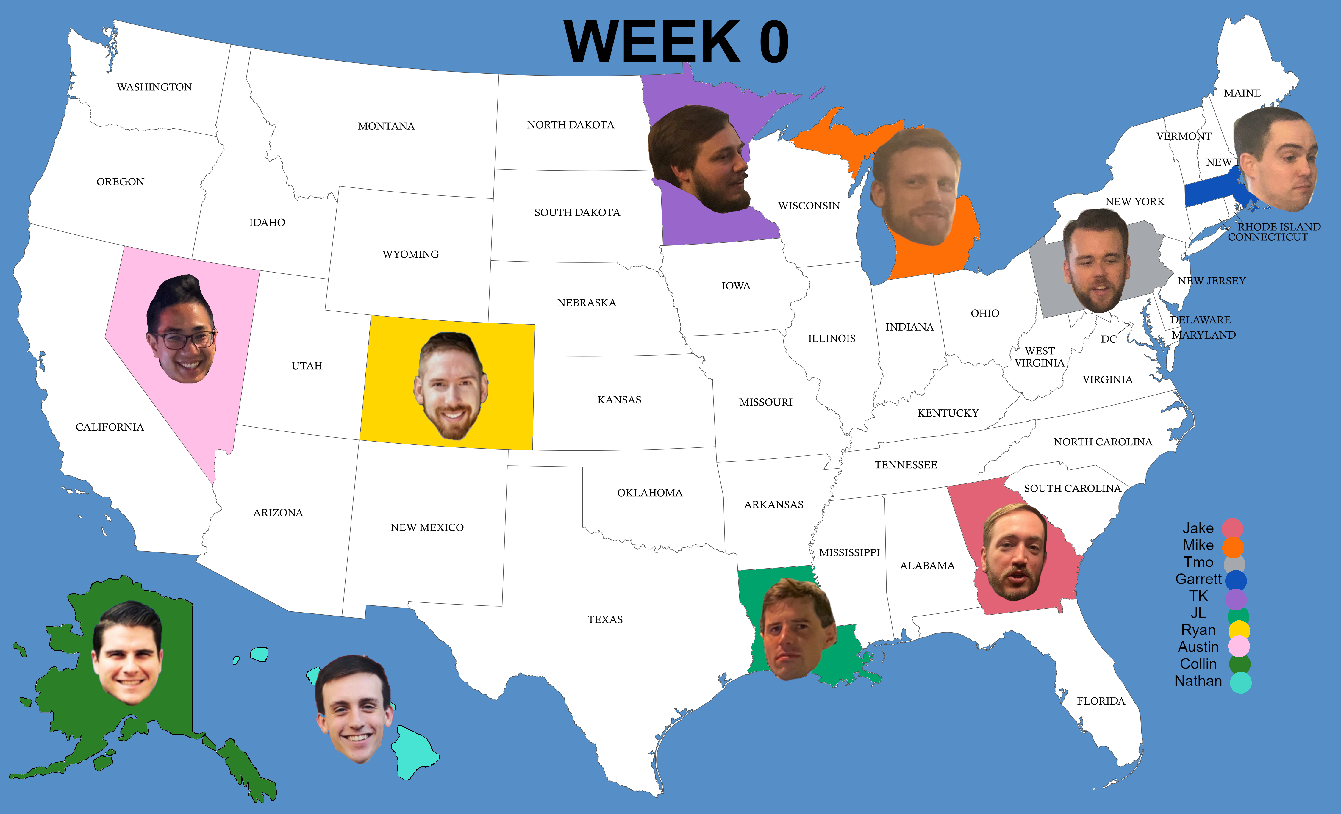 Ok boys, game time. Nothing crazy this week, set those lineups and be ready for kickoff on Thursday night. The newsletter will also feature running information throughout the year, including the winner of the previous Weekly challenge, what the next weekly challenge is, and the current state of the Imperialism map. And, the classics, the series statistics for the upcoming games. Best of luck everyone!