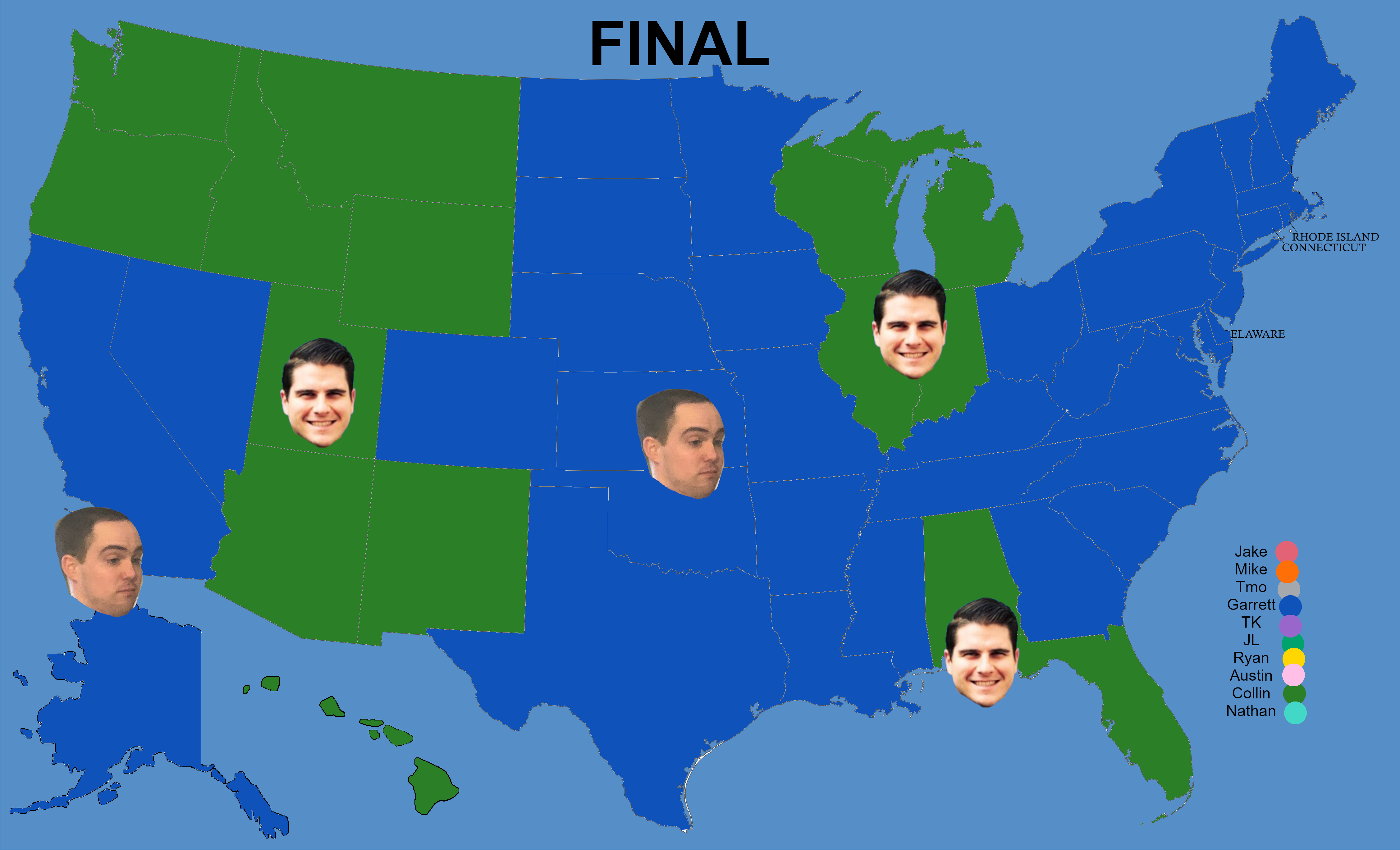 Taken straight from the bowels of the college football subreddit, the Imperialism map is a growing and evolving map that visualizes success on the virtual gridiron. Everyone starts with a state as selected by yours truly. If you WIN your match up, you gain a state (until there are none left after Week 8) and take any states your opponent owns. At the end of the season, whoever owns the most states will be declared the King of Football and get a tasty $10 reward.