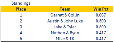 | 4 | Nathan | 6.0 | 3-3 | 3.0 | 734.76 | 747.82 |