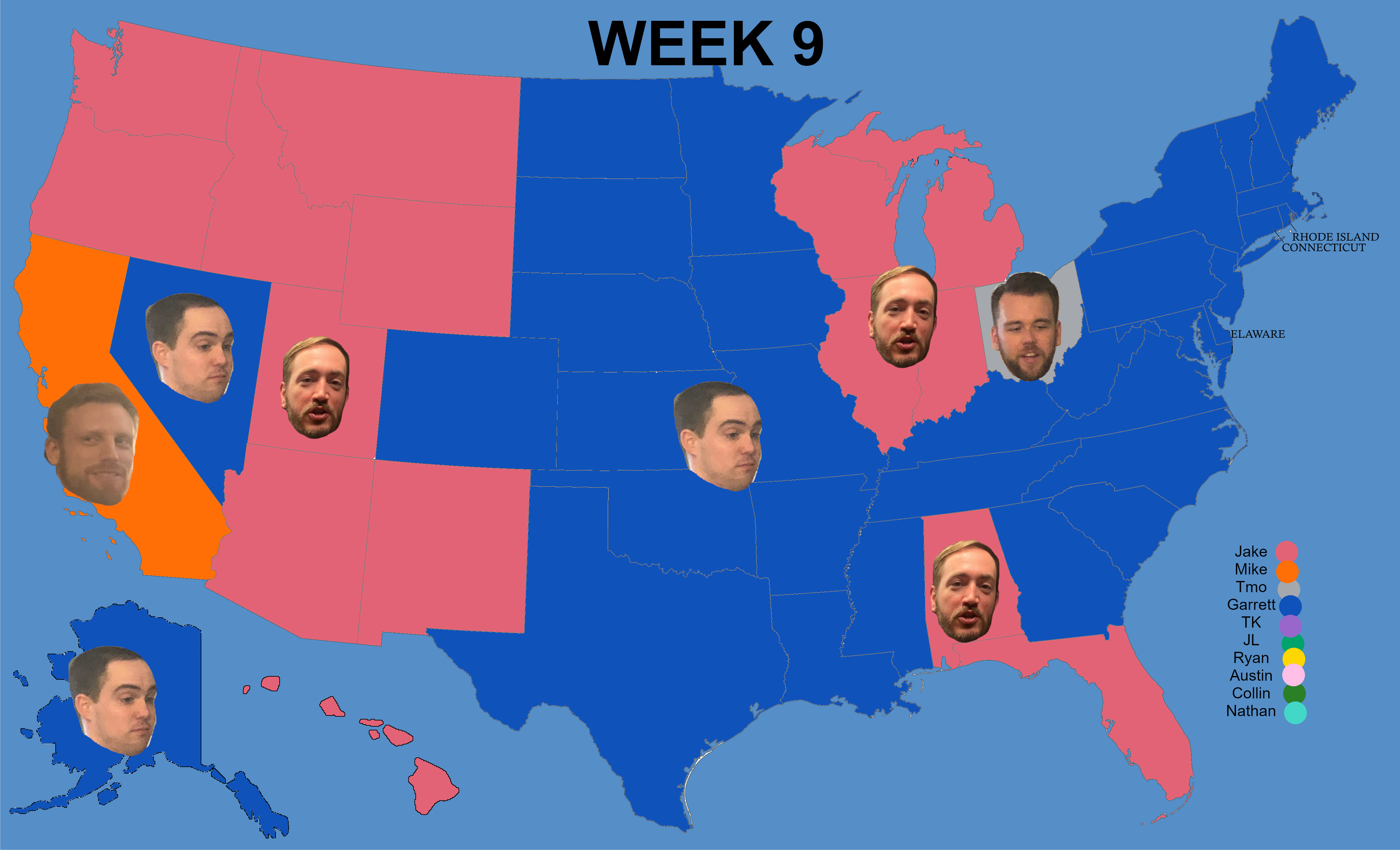 Ryan, Nathan, and Jake all have 9 points, but both teams have the H2H over Jake and Nathan has the H2H over Ryan, thus the order of the standings. Ryan and Nathan also just played, so this is an immediate rematch of this past weekends game. This game is hugely important due to the positions of these two teams, both within striking distance of a playoff spot. This game and Austin-Jake are also the only two games that were not already scheduled for another matchup later in the season, so this is Ryan's chance to even the series to force the PPG tiebreaker if it came down to it at season's end. Look for Josh Allen vs Josh Jacobs to duke it out for the big win in the Gut Check week.