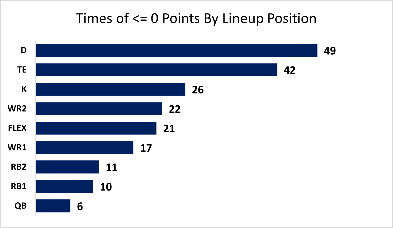 Okay, dig out the TE scores, simple enough. Wait... this can't be right. In 810 games since I started tracking player points, there have been 42 instances of a