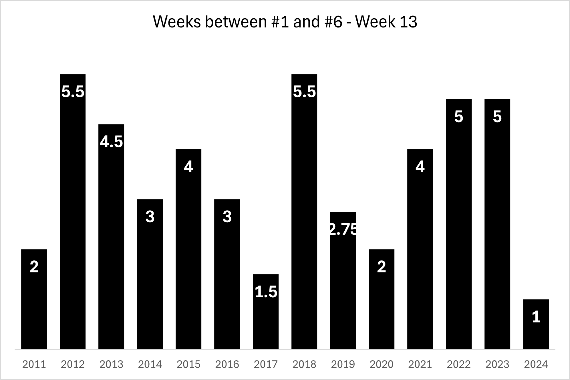 Yall these standings are TIGHT. 2 points (1 week, in essence) separate #1 and #6. How does that compare to year's past??